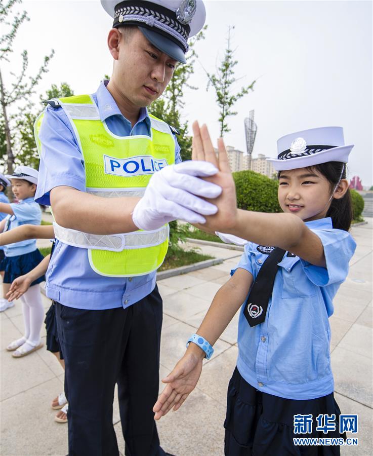Hengshui, 10/07/2019 (El Pueblo en Línea) - Durante las vacaciones de verano, la brigada de la Policía de Tránsito de Wuyi, en la ciudad de Hengshui de la provincia de Hebei, organizó una serie de actividades para los estudiantes de primaria titulada “Los peque?os policías de tráfico viven una nueva experiencia de verano”. A través del aprendizaje de signos de tráfico, identificación de las se?ales y experiencia del comando de carretera, los estudiantes aprenden conocimiento sobre seguridad del tráfico y mejoran la concienciación sobre la seguridad del tráfico.