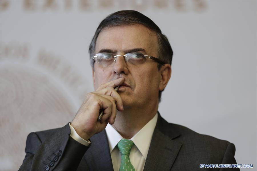 El secretario de Relaciones Exteriores, Marcelo Ebrard, participa en una conferencia de prensa, en la Ciudad de México, capital de México, el 15 de julio de 2019. México no coincide con las medidas que limitan el acceso de asilo en Estados Unidos a personas que lo soliciten tras cruzar la frontera común, informó el lunes Ebrard. (Xinhua/Francisco Ca?edo)
