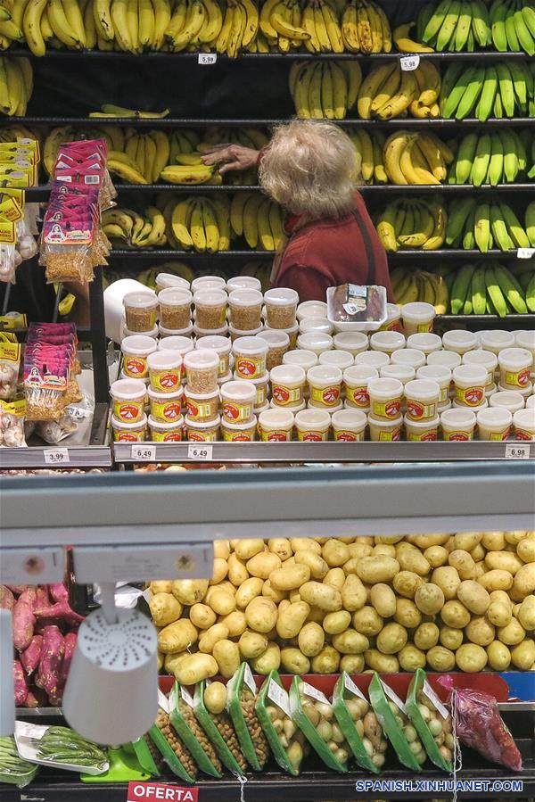 Una mujer elige plátanos en un supermercado, en Sao Paulo, Brasil, el 15 de julio de 2019. Los analistas del mercado financiero de Brasil redujeron de 0,82 a 0,81 por ciento la previsión de crecimiento del producto interno bruto (PIB) para 2019, una nueva baja consecutiva, informó el lunes el Banco Central (BC). (Xinhua/Rahel Patrasso)