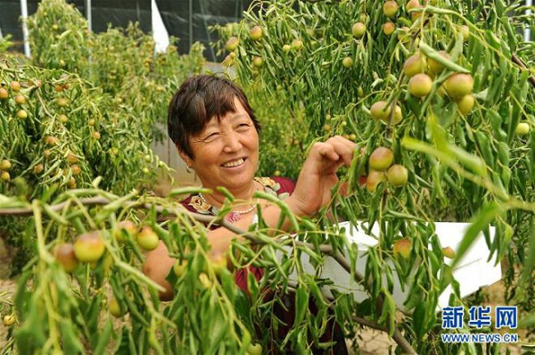 El 14 de julio, los agricultores de azufaifas de la Cooperativa Agrícola Luran en el condado Cangxian de Hebei, recogían las azufaifas de invierno en un invernadero. [Foto: Xinhua/Mouyu]