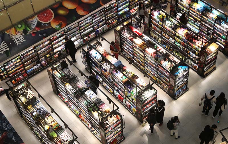 Los consumidores seleccionan alimentos en un supermercado en Shanghai, el 15 de abril de 2019. [Foto / Xinhua]