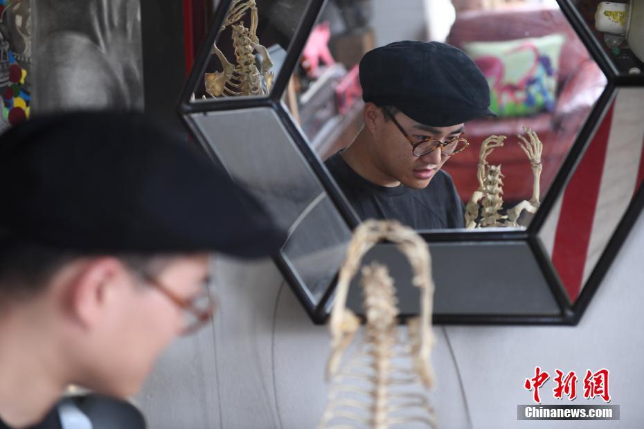 Beijing, 17/07/2019 (El Pueblo en Línea) - El 15 de julio, Li Zhangda produce el esqueleto de un animal. Li elabora especímenes de mascotas en Hangzhou, provincia de Zhejiang. En los últimos a?os, Li ha prolongado de esta manera el cari?o y el acompa?amiento que diez mascotas ofrecían a sus due?os creando especímenes. (Foto: Wang Gang)