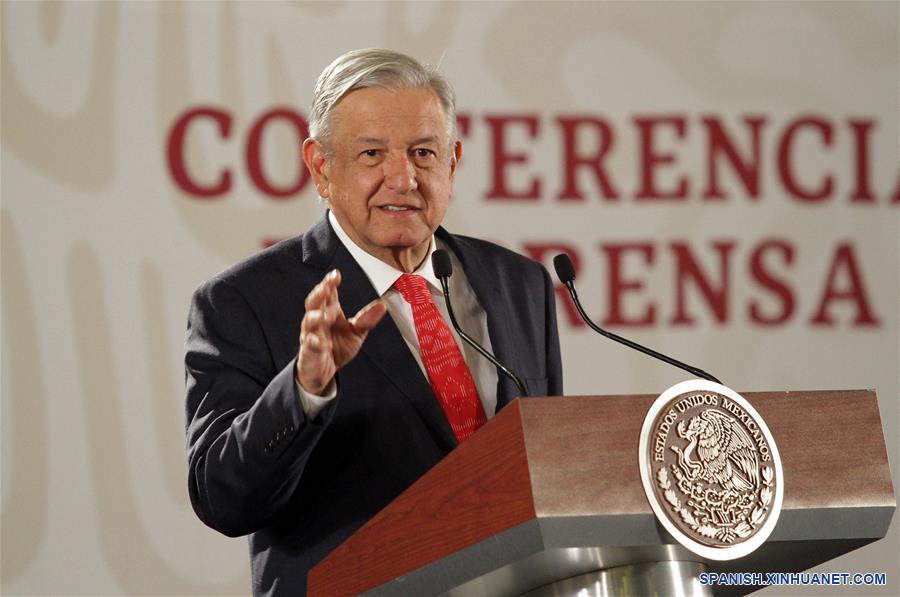 CIUDAD DE MEXICO, 17 julio, 2019 (Xinhua) -- El presidente de México, Andrés Manuel López Obrador, habla en una rueda de prensa, en Palacio Nacional, en la Ciudad de México, capital de México, el 17 de julio de 2019. López Obrador, anunció el miércoles que en los próximos días se reunirá en el país con legisladores estadounidenses para acelerar la aprobación del Tratado entre México, Estados Unidos y Canadá (T-MEC) de libre comercio. (Xinhua/Str)