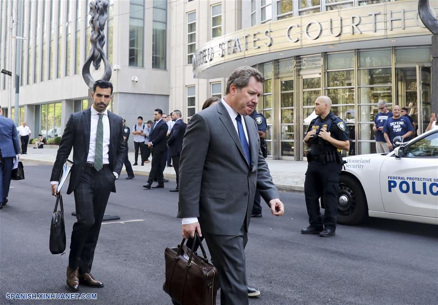 Jeffrey Lichtman (c), abogado de Joaquín "El Chapo" Guzmán, se retira luego de que se diera a conocer la sentencia de su cliente, en el barrio de Brooklyn de la Ciudad de Nueva York, Estados Unidos, el 17 de julio de 2019. Jueces de Estados Unidos sentenciaron el miércoles a cadena perpetua al capo mexicano de la droga, Joaquín "El Chapo" Guzmán. El juez de distrito, Brian Cogan, anunció el veredicto en un tribunal federal del distrito de Brooklyn, Nueva York. Cogan también a?adió 30 a?os a la condena y ordenó a Guzmán pagar 12.600 millones de dólares al gobierno estadounidense. (Xinhua/Wang Ying)