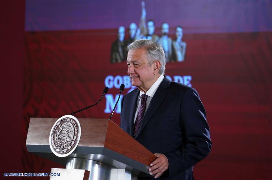 El presidente mexicano, Andrés Manuel López Obrador, habla en una rueda de prensa en Palacio Nacional, en la Ciudad de México, capital de México, el 19 de julio de 2019. El gobierno mexicano seguirá pugnando por que los bancos privados reduzcan las comisiones a las remesas que los mexicanos envían desde el exterior, una de las principales fuentes de divisas del país, afirmó el viernes el presidente de México, Andrés Manuel López Obrador. (Xinhua/Str)
