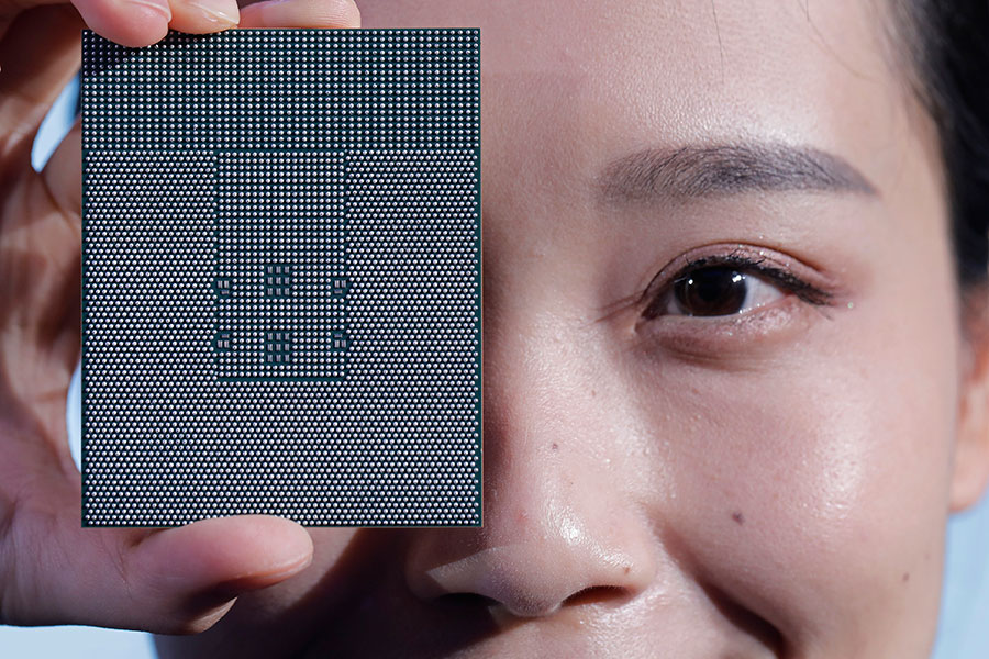 Un microprocesador Huawei Kunpeng 920 se exhibe en Shenzhen, provincia de Guangdong, enero 2019. [Foto: Agencias]