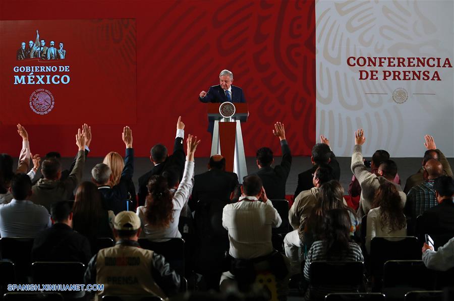 El presidente de México, Andrés Manuel López Obrador, reacciona en una rueda de prensa en Palacio Nacional, en la Ciudad de México, capital de México, el 23 de julio de 2019. López Obrador, dijo el martes que el país no renunciará a organismos como el Fondo Monetario Internacional (FMI) pese a las discrepancias sobre la forma de medir el crecimiento económico. (Xinhua/Str)