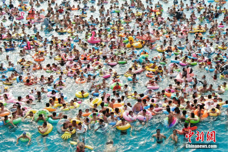 Ciudadanos de Nanjing se agrupan en el parque acuático para tomar el fresco (3)