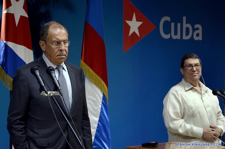 El canciller cubano, Bruno Rodríguez (d), y su homólogo de Rusia, Serguei Lavrov (i), participan en una conferencia de prensa conjunta en la sede del Ministerio de Relaciones Exteriores cubano, en La Habana, capital de Cuba, el 24 de julio de 2019. Los cancilleres de Cuba, Bruno Rodríguez, y de Rusia, Sergey Lavrov, reiteraron el miércoles la disposición de ambos gobiernos de fortalecer los vínculos bilaterales y estrechar aún más las relaciones en todos los ámbitos para enfrentar las "difíciles condiciones" internacionales suscitadas por Estados Unidos. (Xinhua/Joaquín Hernández)