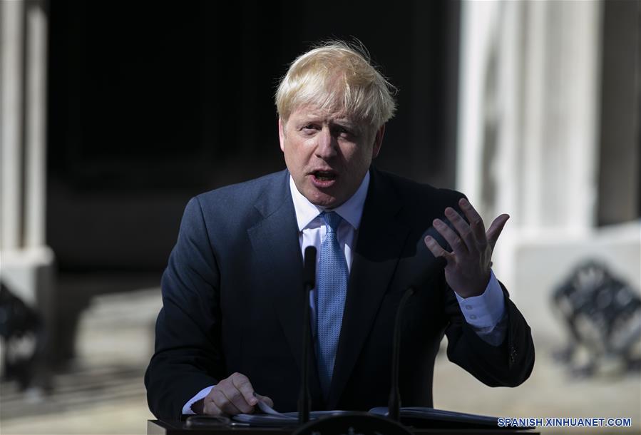 El recién elegido líder del Partido Conservador y primer ministro de Reino Unido, Boris Johnson, habla en el número 10 de la calle Downing, en Londres, Reino Unido. El recién elegido líder del Partido Conservador británico, Boris Johnson, asumió el miércoles el cargo de primer ministro de Reino Unido en medio de las crecientes incertidumbres sobre el "brexit". El relevo ocurre luego de que Theresa May renunció formalmente como primera ministra del país y Johnson fue invitado por la reina británica Isabel para formar el gobierno. (Xinhua/Han Yan)