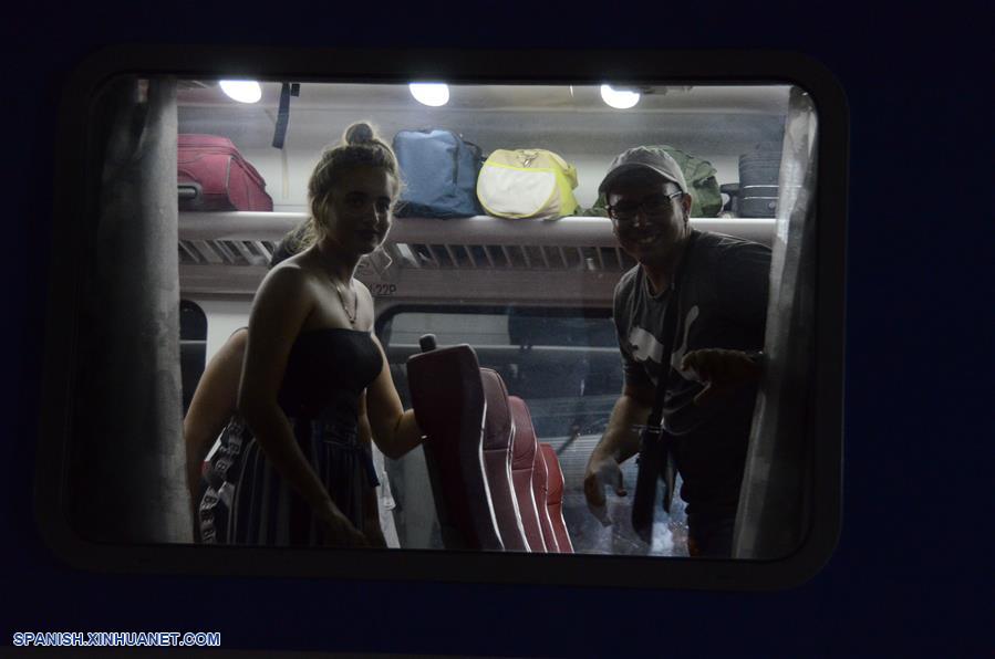 Imagen del 17 de julio de 2019 de personas observando desde el interior de un vagón de tren chino, en La Habana, Cuba. Desde que entraron en funcionamiento el pasado 13 de julio, los trenes chinos que van desde La Habana hasta Guantánamo, en el extremo oriental de Cuba, han transportado a más de 23.000 personas, informó a Xinhua el ministro de Transporte, Eduardo Rodríguez. (Xinhua/Joaquín Hernández)