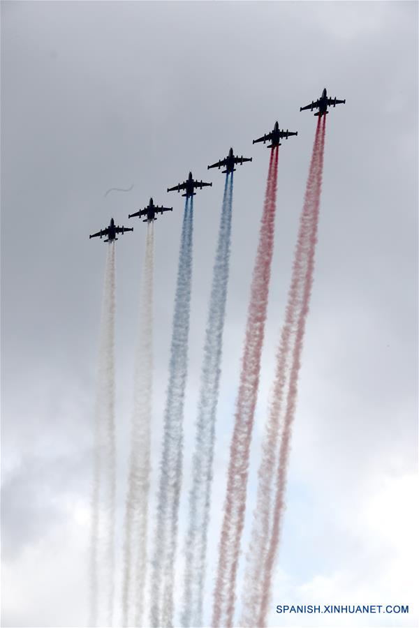 SAN PETERSBURGO, 28 julio, 2019 (Xinhua) -- Aeronaves de combate rusas realizan una presentación durante el desfile anual del Día de la Armada, en San Petersburgo, Rusia, el 28 de julio de 2019. (Xinhua/Lu Jinbo)