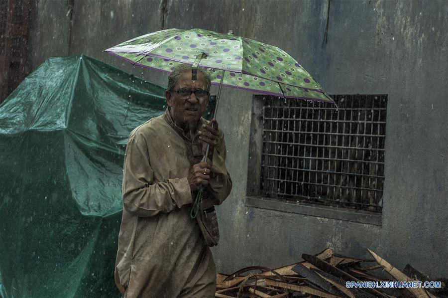 CALCUTA, 28 julio, 2019 (Xinhua) -- Un hombre camina en medio de una fuerte lluvia, en Calcuta, India, el 28 de julio de 2019. De acuerdo con información de la prensa local, India se encuentra actualmente en su temporada de monsón que durará hasta septiembre. (Xinhua/Tumpa Mondal)
