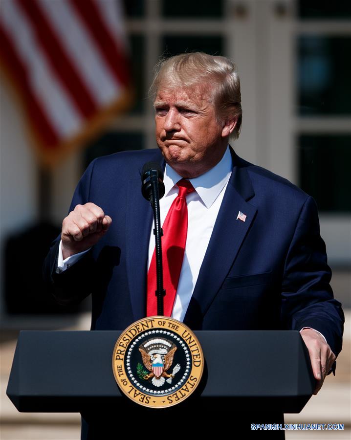 El presidente de Estados Unidos, Donald Trump, pronuncia un discurso durante una ceremonia de firma de la "Autorización Permanente de la Ley del Fondo de Compensación para Víctimas del 11 de Septiembre", en la Casa Blanca en Washington, D.C., Estados Unidos, el 29 de julio de 2019. El presidente de Estados Unidos, Donald Trump, firmó el lunes una ley que extiende el financiamiento para las víctimas de los ataques terroristas del 11 de septiembre de 2001. (Xinhua/Ting Shen)