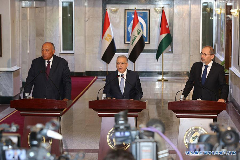 BAGDAD, 4 ago (Xinhua) -- Los ministros de Relaciones Exteriores de Irak, Egipto y Jordania se reunieron hoy en Bagdad para impulsar las relaciones árabes y disminuir las tensiones en la región de Medio Oriente.