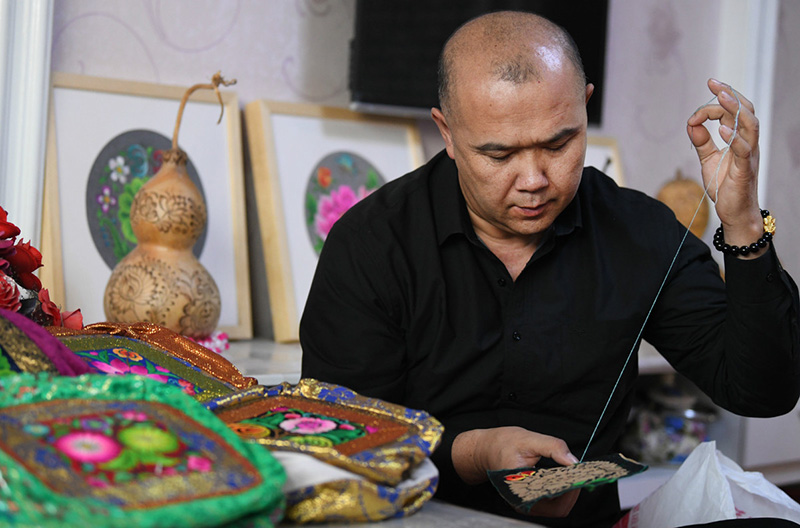 Kader se convirtió en secretario general de la Asociación de Bordados de Hami y ha viajado extensamente por todo el país para conocer los diferentes estilos de bordado. La gran cantidad de conocimiento y experiencia con la que regresó lo ha ayudado a planificar muchos de los talleres de bordado de la asociación.