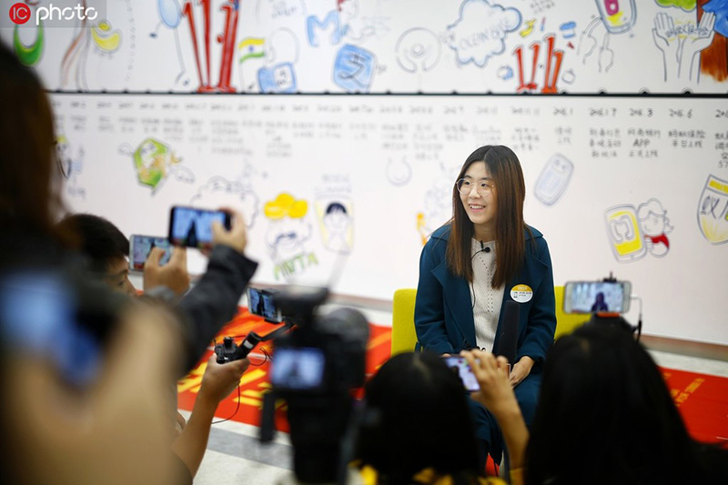La chica de 26 a?os,cuyo nombre de usuario en Weibo es "Xin Xiaodai", recibe una entrevista después de ganar el mayor premio patrocinado por el servicio de pago móvil Alipay del Grupo Alibaba en Beijing, China, el 9 de octubre de 2018. [Foto: IC]