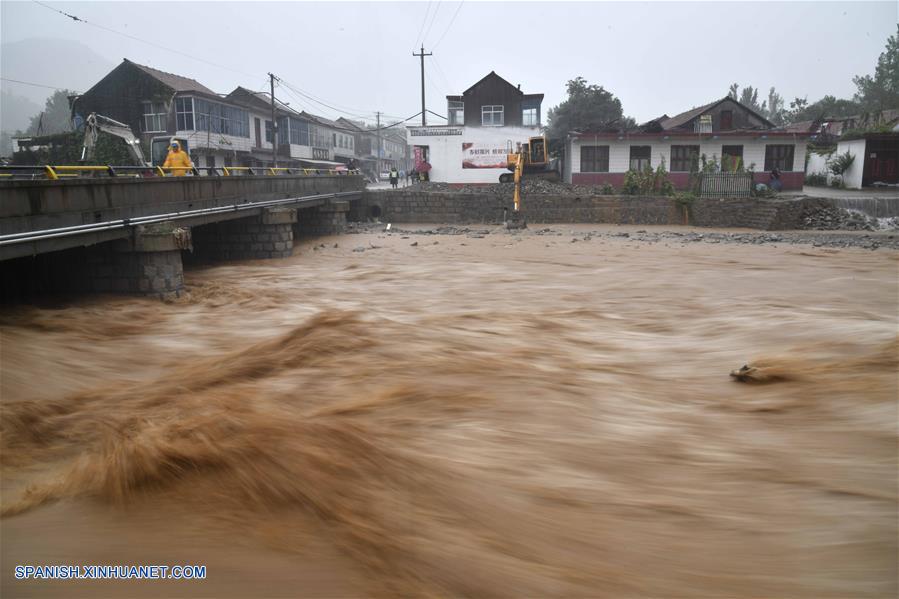 Imagen tomada con velocidad de obturación lenta, de un río inundado en la aldea de Wangfen de la municipalidad de Wangfen en Qingzhou, en la provincia de Shandong, en el este de China. El tifón Lekima tocó tierra por segunda ocasión el domingo a las 20:50 horas en la costa del distrito de Huangdao, en la ciudad de Qingdao, en la provincia de Shandong, este de China, con vientos de hasta 82,8 kilómetros por hora, dijo la Administración Meteorológica de China. (Xinhua/Guo Xulei)