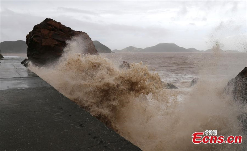 Enormes olas causadas por el tifón Lekima arrecian en la playa de Taizhou, provincia de Zhejiang, 9 de agosto del 2019 [Foto: Servicio de Noticias de China / Jin Yunguo]