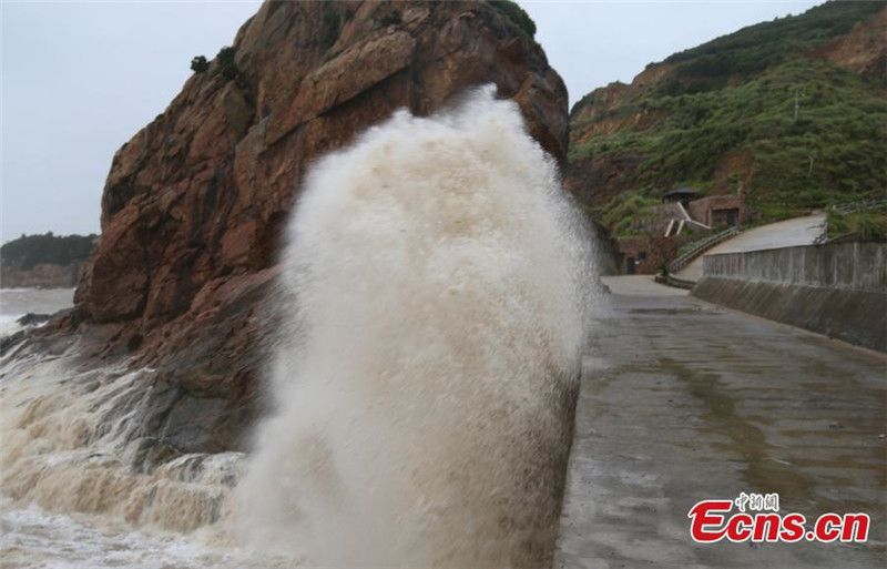 Taizhou, 12/08/2019 (El Pueblo en Línea) - Enormes olas causadas por el tifón Lekima arrecian en la playa de Taizhou, provincia de Zhejiang, 9 de agosto del 2019 [Foto: Servicio de Noticias de China / Jin Yunguo]