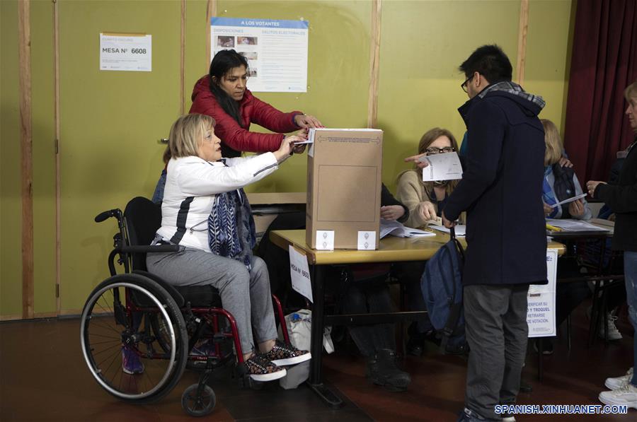 Una mujer emite su voto durante las elecciones primarias, en una escuela en la ciudad de Buenos Aires, capital de Argentina, el 11 de agosto de 2019. Los centros de votación para las elecciones primarias de Argentina se abrieron el domingo a las 08:00 hora local (11:00 GMT). Están habilitados para sufragar un total de 33.841.837 de ciudadanos, que votarán para definir a los candidatos que buscarán la Presidencia en los comicios del 27 de octubre, en los que el oficialista "Juntos por el Cambio" aspira a su segundo mandato consecutivo. (Xinhua/Martín Zabala)