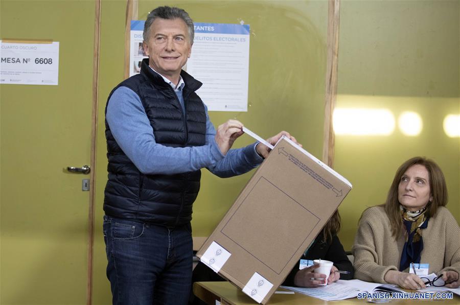 El presidente argentino, Mauricio Macri (i), emite su voto durante las elecciones primarias, en la ciudad de Buenos Aires, capital de Argentina, el 11 de agosto de 2019. Los centros de votación para las elecciones primarias de Argentina se abrieron el domingo a las 08:00 hora local (11:00 GMT). Están habilitados para sufragar un total de 33.841.837 de ciudadanos, que votarán para definir a los candidatos que buscarán la Presidencia en los comicios del 27 de octubre, en los que el oficialista "Juntos por el Cambio" aspira a su segundo mandato consecutivo. (Xinhua/Martín Zabala)