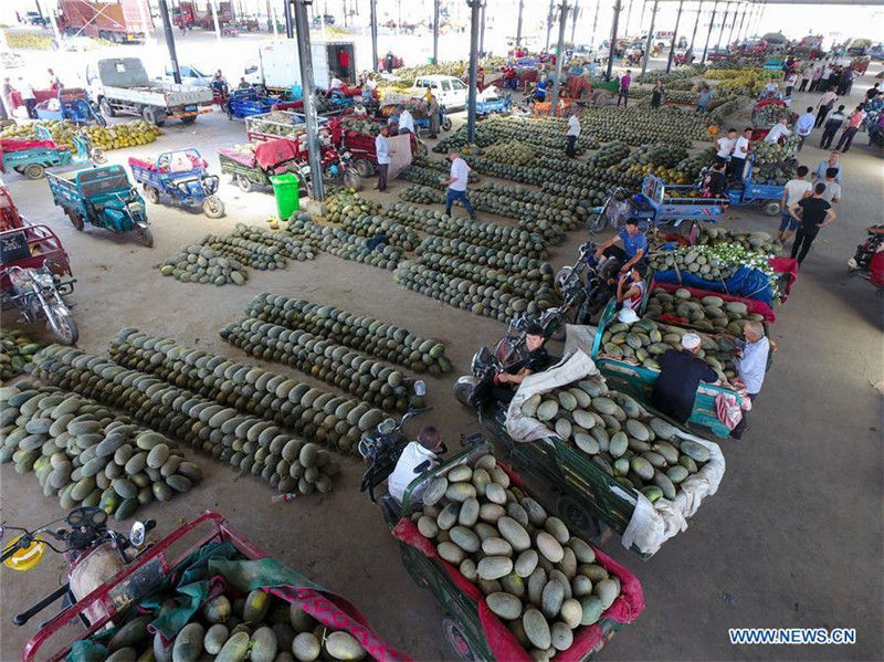 Mercado de melones en Jiashi, Kashgar, Región Autónoma Uigur de Xinjiang, 11 de agosto del 2019. [Foto: Xinhua / Ding Lei]