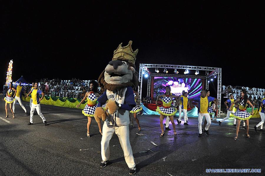 LA HABANA, 18 agosto, 2019 (Xinhua) -- Imagen del 17 de agosto de 2019, de integrantes de una comparsa participando durante un desfile de los Carnavales 2019, en el Malecón de La Habana, en La Habana, capital de Cuba. Como cada a?o por estos días de verano caribe?o, miles de personas toman el Malecón de La Habana para divertirse entre carrozas y comparsas, mientras disfrutan de las noches de la capital de Cuba en los Carnavales 2019. (Xinhua/Joaquín Hernández)
