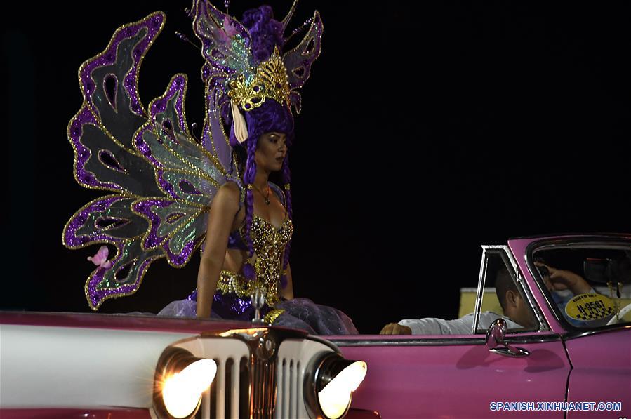 Imagen del 17 de agosto de 2019, de una bailarina participando durante un desfile de los Carnavales 2019, en el Malecón de La Habana, en La Habana, capital de Cuba. Como cada a?o por estos días de verano caribe?o, miles de personas toman el Malecón de La Habana para divertirse entre carrozas y comparsas, mientras disfrutan de las noches de la capital de Cuba en los Carnavales 2019. (Xinhua/Joaquín Hernández)