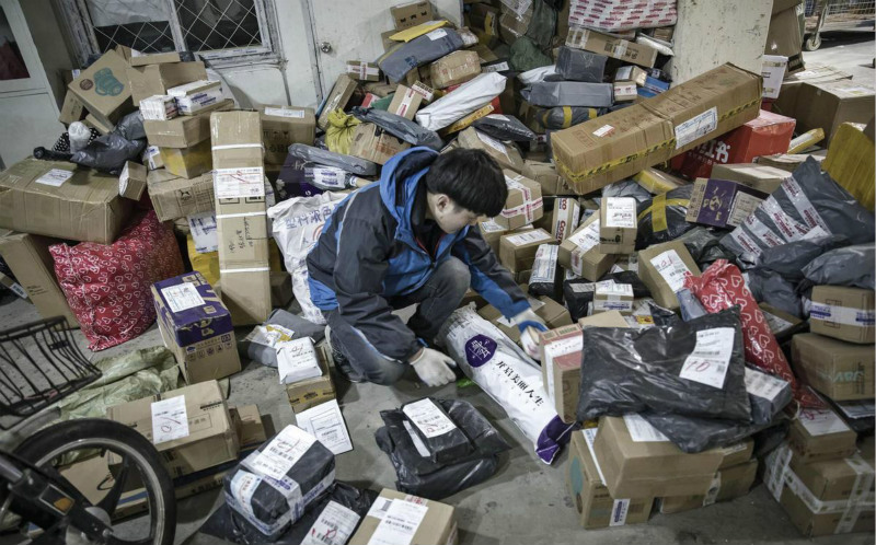 Almacén de encomiendas postales. [Foto: Shen Qilai/ Bloomberg]