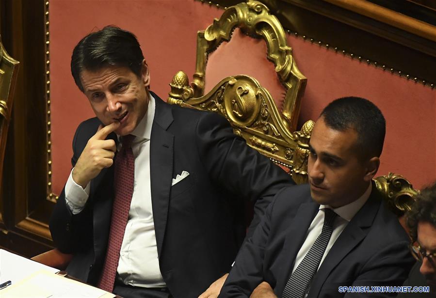ROMA, 20 agosto, 2019 (Xinhua) -- El primer ministro de Italia, Giuseppe Conte (i), asiste a un debate parlamentario en Roma, Italia, el 20 de agosto de 2019. Conte presentó el martes su renuncia al presidente de la república, con lo que pone fin a su gobierno de cerca de 14 meses. (Xinhua/Alberto Lingria)