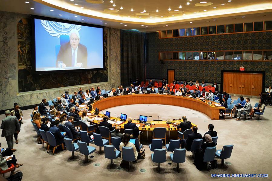 Una reunión del Consejo de Seguridad de la Organización de las Naciones Unidas (ONU) sobre la situación en Yemen, se lleva a cabo en la sede de la ONU, en Nueva York, Estados Unidos, el 20 de agosto de 2019. Ursula Mueller dijo el martes que se están cancelando muchos programas humanitarios en Yemen debido al lento cumplimiento de las promesas de financiamiento para este país asolado por la guerra. (Xinhua/Li Muzi)
