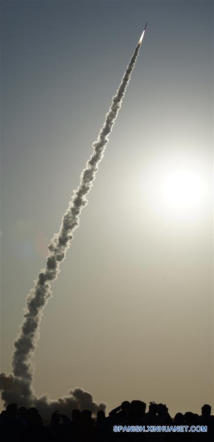 JIUQUAN, 31 agosto, 2019 (Xinhua) -- Dos satélites de experimentos tecnológicos son lanzados al espacio por un cohete portador Kuaizhou-1A, o KZ-1A desde el Centro de Lanzamiento de Satélites de Jiuquan, en la provincia de Gansu, en el noroeste de China, el 31 de agosto de 2019. El cohete despegó a las 7:41 a.m. enviando a ambos satélites a su órbita planeada. Kuaizhou-1A, que significa vehículo velóz es un cohete portador de combustible sólido de bajo costo con alta confiabilidad y un corto periodo de preparación. El cohete, desarrollado por una compa?ía bajo la Corporación de Ciencia e Industria Aeroespacial de China, es principalmente usado para lanzar microsatélites de baja órbita. El lanzamiento del sábado fue la tercera misión del cohete KZ-1A. (Xinhua/Wang Xiaoliang)