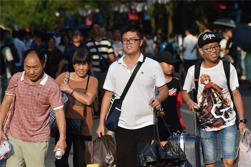Acompa?ados por sus padres, los nuevos estudiantes llegan a la Universidad de Zhejiang. Alrededor del 10 por ciento de los más de 6.000 estudiantes de primer a?o han recibido ayuda financiera estatal. 16 de agosto del 2019. (Foto: Pan Haison/ China Daily)
