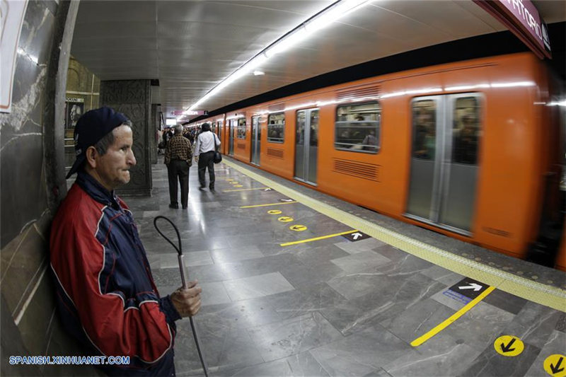 Imagen del 30 de agosto de 2019 de un usuario esperando un vagón del Metro de la Ciudad de México, en la Ciudad de México, capital de México. El Metro conmemorará el miércoles 4 de septiembre el 50 aniversario de su inauguración oficial, realizada un día antes de abrir al público, convertido en la columna vertebral de la movilidad de la capital mexicana y en un ícono de su vida, según sus autoridades. (Xinhua/Francisco Ca?edo)