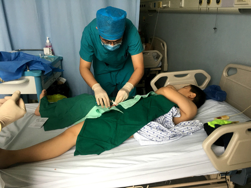 Un médico dijo que el ni?o fue sometido a una extracción de médula ósea bajo anestesia local. Durante la operación, el ni?o permaneció callado y calmado, dijo el médico.
