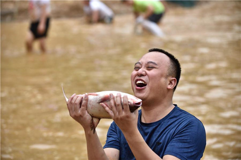 Un visitante agarra un pez gordo durante “Shaiqiu” que se celebra en Fuling, Chongqing, el 7 de septiembre del 2019. (Foto: chinadaily.com.cn)