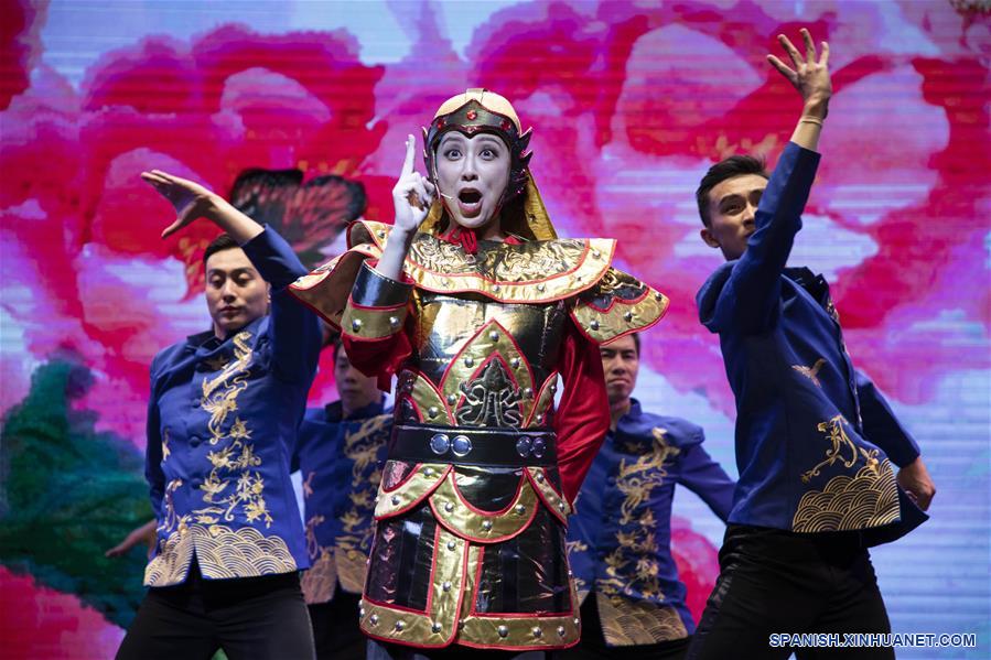 BUENOS AIRES, 17 septiembre, 2019 (Xinhua) -- Imagen del 16 de septiembre de 2019 de un integrante de la Compa?ía de Teatro de Danza y ópera de Hangzhou realizando una presentación en la recepción por el 70 aniversario de la fundación de la República Popular China, en el Centro Cultural Kirchner, en Buenos Aires, Argentina. La actividad organizada por la Embajada de China en Argentina ofreció un recorrido por las distintas etapas de la historia china tras su fundación en 1949, resaltando el proceso de Reforma y Apertura y la actual Iniciativa de la Franja y la Ruta, además de expresiones del arte convencional mezclado con elementos de la cultura popular argentina. (Xinhua/Martín Zabala)