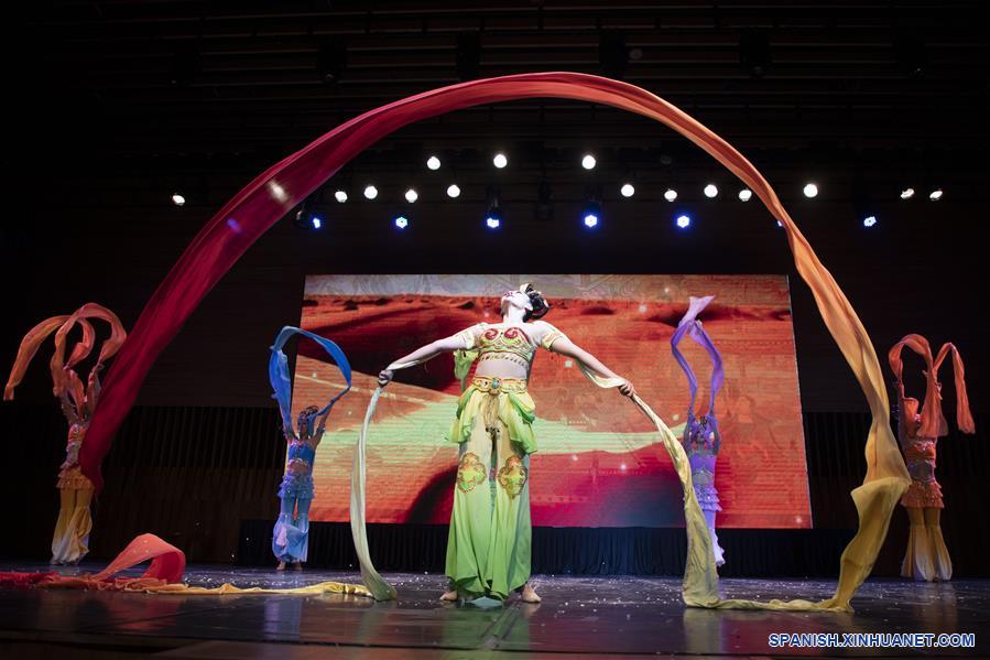 BUENOS AIRES, 17 septiembre, 2019 (Xinhua) -- Imagen del 16 de septiembre de 2019 de un integrante de la Compa?ía de Teatro de Danza y ópera de Hangzhou realizando una presentación en la recepción por el 70 aniversario de la fundación de la República Popular China, en el Centro Cultural Kirchner, en Buenos Aires, Argentina. La actividad organizada por la Embajada de China en Argentina ofreció un recorrido por las distintas etapas de la historia china tras su fundación en 1949, resaltando el proceso de Reforma y Apertura y la actual Iniciativa de la Franja y la Ruta, además de expresiones del arte convencional mezclado con elementos de la cultura popular argentina. (Xinhua/Martín Zabala)