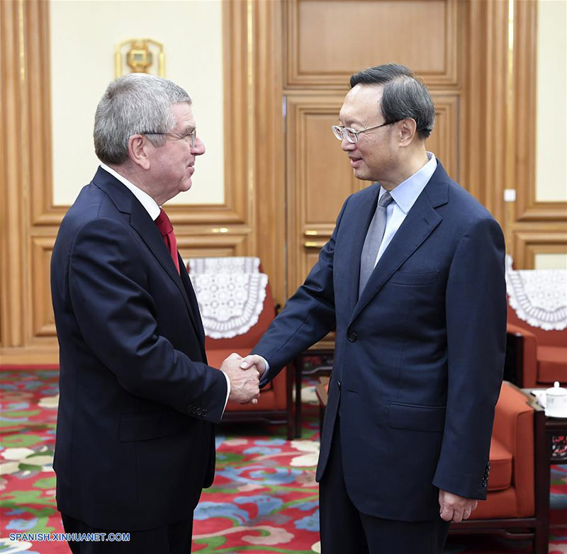Yang, también director de la Oficina de la Comisión de Asuntos Exteriores del Comité Central del PCCh, aplaudió los esfuerzos de Bach para promover el desarrollo del Movimiento Olímpico global y la cooperación entre el COI y China.