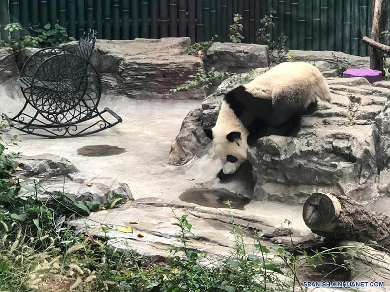 BEIJING, 13 octubre, 2019 (Xinhua) -- El panda gigante Mengbao descansa en su nueva casa en el Zoológico de Beijing, en Beijing, capital de China, el 13 de octubre de 2019. Los gemelos de panda gigante, Mengbao y Mengyu, nacidos en mayo de 2018 en la Base de Investigación de Cría de Pandas Gigantes de Chengdu, en la provincia de Sichuan, en el suroeste de China, debutaron en el Zoológico de Beijing el domingo. Los gemelos serán criados en Beijing. (Xinhua/Li Xin)