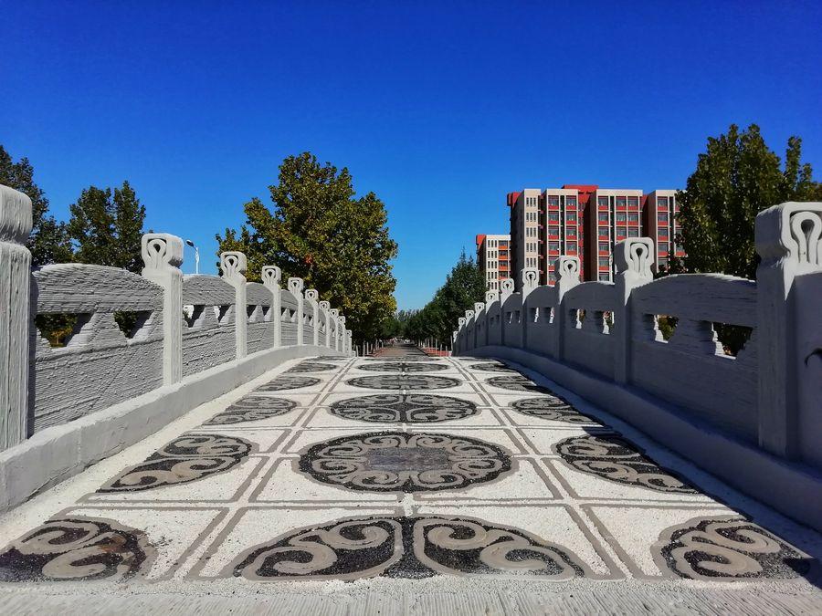 Puente de hormigón impreso en 3D en la Universidad Tecnológica de Hebei, 14 de octubre de 2019. (Xinhua)