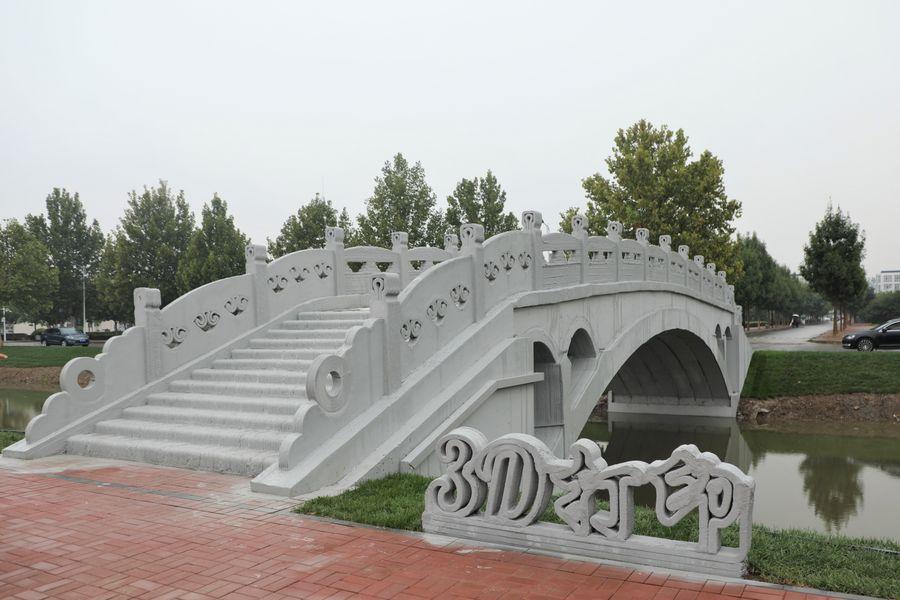 Puente de hormigón impreso en 3D en la Universidad Tecnológica de Hebei, 13 de octubre de 2019. (Xinhua)