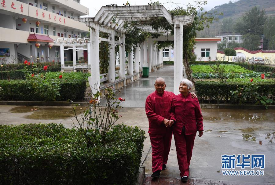 Una pareja de recién casados pasea por un centro de atención para ancianos en Luonan. [Foto / Xinhua]