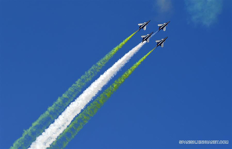 CHANGCHUN, 17 octubre, 2019 (Xinhua) -- El Equipo Acrobático Bayi (1 de agosto) realiza una actuación durante una actividad en celebración del 70° aniversario de la fundación de la fuerza Aérea del Ejército Popular de Liberación (EPL) de China, en Changchun, capital de la provincia de Jilin, en el noreste de China, el 17 de octubre de 2019. La actividad de cinco días, donde la Fuerza Aérea del EPL exhibirá armas y equipos y ofrecerá espectáculos acrobáticos para celebrar su 70° aniversario de fundación, comenzó el jueves. Los espectadores podrán deleitarse con vuelos acrobáticos, espectáculos de paracaidistas, ejercicios de combate de cazas de tercera generación y demostraciones de fuerzas especiales aerotransportadas. Un total de 35 aviones de diez tipos harán presentaciones acrobáticas, como el caza furtivo J-20, el avión de transporte Y-20 y el caza J-16. Además de 19 aviones, la fuerza aérea seleccionó 71 equipos para la exposición estática, con el fin de demostrar su capacidad en combate aéreo, entrega estratégica, alerta y detección tempranas, apoyo de información y defensa aérea y capacidades antimisiles. (Xinhua/Lin Hong)