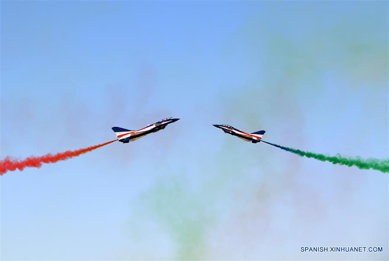 CHANGCHUN, 17 octubre, 2019 (Xinhua) -- El Equipo Acrobático Bayi (1 de agosto) realiza una actuación durante una actividad en celebración del 70° aniversario de la fundación de la fuerza Aérea del Ejército Popular de Liberación (EPL) de China, en Changchun, capital de la provincia de Jilin, en el noreste de China, el 17 de octubre de 2019. La actividad de cinco días, donde la Fuerza Aérea del EPL exhibirá armas y equipos y ofrecerá espectáculos acrobáticos para celebrar su 70° aniversario de fundación, comenzó el jueves. Los espectadores podrán deleitarse con vuelos acrobáticos, espectáculos de paracaidistas, ejercicios de combate de cazas de tercera generación y demostraciones de fuerzas especiales aerotransportadas. Un total de 35 aviones de diez tipos harán presentaciones acrobáticas, como el caza furtivo J-20, el avión de transporte Y-20 y el caza J-16. Además de 19 aviones, la fuerza aérea seleccionó 71 equipos para la exposición estática, con el fin de demostrar su capacidad en combate aéreo, entrega estratégica, alerta y detección tempranas, apoyo de información y defensa aérea y capacidades antimisiles. (Xinhua/Lin Hong)