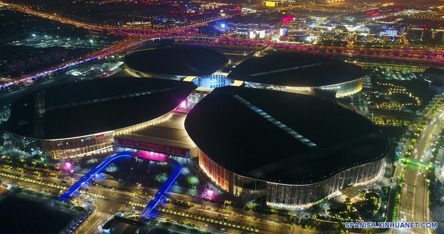 SHANGHAI, 27 octubre, 2019 (Xinhua) -- Vista aérea del 27 de octubre de 2019 del Centro Nacional de Exposiciones y Convenciones de Shanghai, sede de la segunda Exposición Internacional de Importaciones de China, en Shanghai, en el este de China. (Xinhua/Ding Ting)