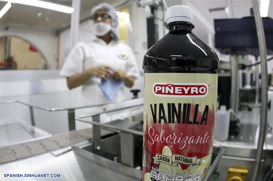 Imagen del 19 de septiembre de 2019 de una trabajadora laborando en el proceso de etiquetado del extracto de vainilla de la marca Pi?eyro, en Guadalajara, estado de Jalisco, México. Grupo Tecnaal, que cuenta con diferentes presentaciones de la vainilla a través de su marca registrada Pi?eyro, desarrolló un extracto en pasta natural que presentará en noviembre próximo en la segunda edición de la Exposición Internacional de Importaciones de China en Shanghai. (Xinhua/Francisco Ca?edo)