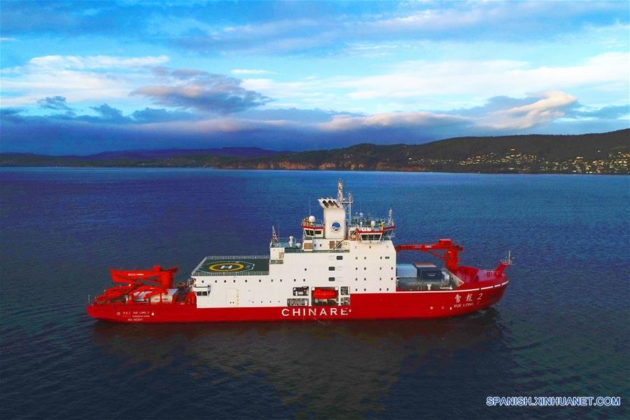 A BORDO XUELONG 2, 4 noviembre, 2019 (Xinhua) -- El rompehielos polar Xuelong 2, o Dragón de Nieve 2, se prepara para atracar en el puerto de Hobart, Australia, el 4 de noviembre de 2019. Después de un viaje de 20 días, el rompehielos chino, que se encuentra en la 36a expedición antártica del país, atracó el lunes en el puerto de Hobart en Australia. Es la primera vez que atraca en un puerto extranjero desde que comenzó su viaje inaugural. (Xinhua/Liu Shiping)