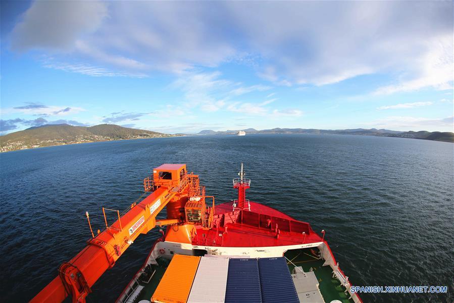 A BORDO XUELONG 2, 4 noviembre, 2019 (Xinhua) -- El rompehielos polar Xuelong 2, o Dragón de Nieve 2, se prepara para atracar en el puerto de Hobart, Australia, el 4 de noviembre de 2019. Después de un viaje de 20 días, el rompehielos chino, que se encuentra en la 36a expedición antártica del país, atracó el lunes en el puerto de Hobart en Australia. Es la primera vez que atraca en un puerto extranjero desde que comenzó su viaje inaugural. (Xinhua/Liu Shiping)
